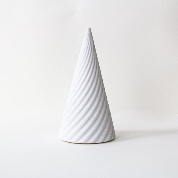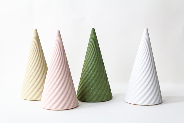 This unique swirl tree has been cast from a cement and marble stone to create a high quality stone finish with sparkle. A sleek and sculptural addition to your centrepiece or mantel for the festive season. At 20cm height it is large enough to make a statement. The tree has been lovingly hand cast, sanded and sealed. Then finished with cork to protect the product and your surfaces.